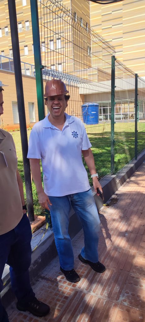 Ce matin nous avons rendez vous à 9h au Laboratoire NIATS pour aller visiter le nouvel hôpital en construction à Uberlandia. A l’occasion je rencontre 2 collègues étrangers qui participent aussi au nouveau projet d’Adriano : Alberto Lopez de Cuba, et Eduardo Rocon d’Espagne. Le premier a réaliser sa thèse au Brésil et le second est brésilien et travaille en espagne depuis 20 ans. Je suis donc le seul à ne pas parler couramment portuguais.