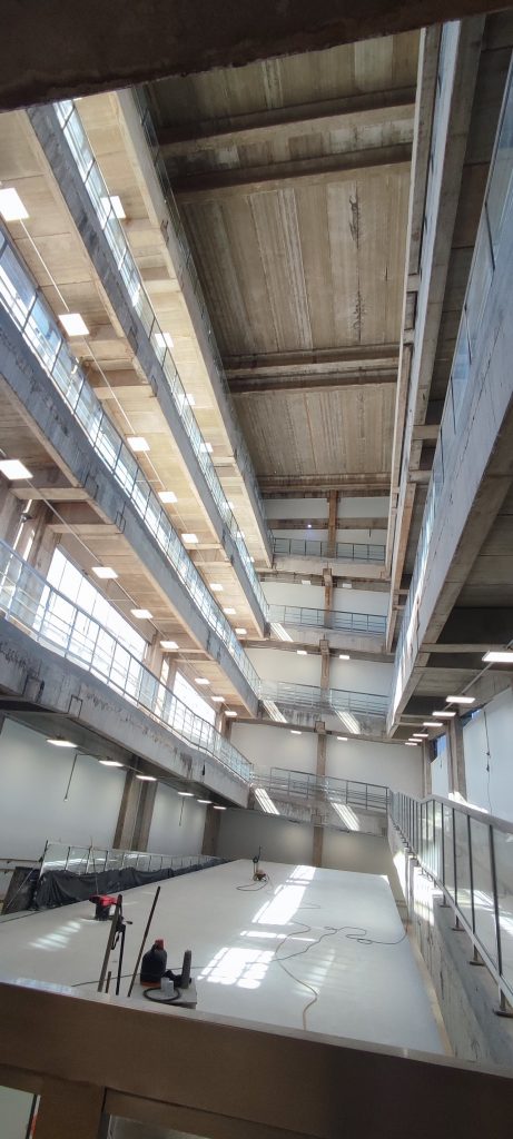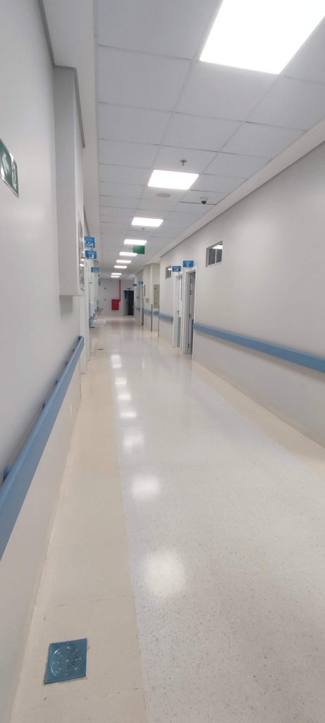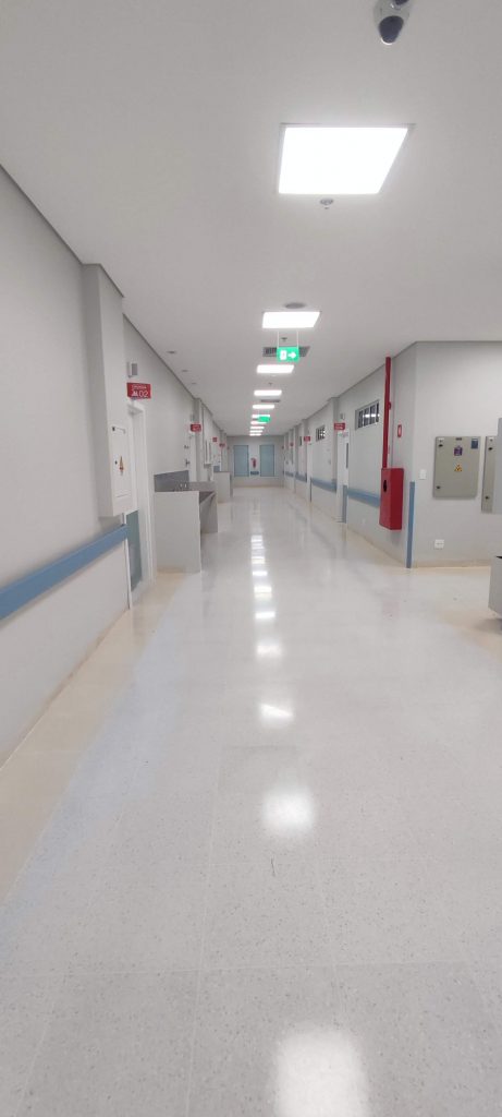On prend la route et le chef de service de Neurologie nous reçoit pour une discussion autour de la recherche universitaire avant d’entamer la visite. L’hôpital est fin de construction mais nous devons mettre des casques pour la visite 😀 :
